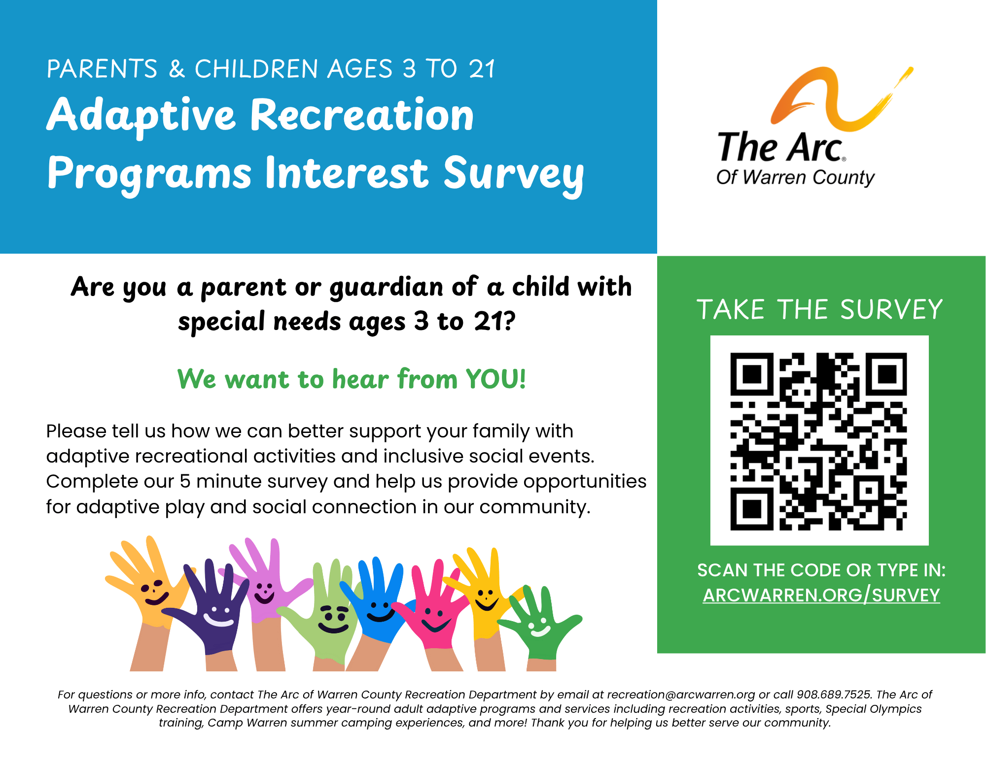 Are you a parent or guardian of a child with special needs ages 3 to 21? We want to hear from you! Please tell us how we can better support your family with adaptive recreational activities and inclusive social events.
