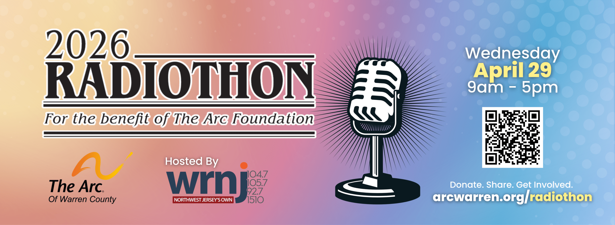 March 30, 2026 – The Arc of Warren County Radiothon with WRNJ is celebrating its 36th anniversary on April 29, 2026. Tune in to hear the stories. Give to make a difference and help make your neighbors thrive.